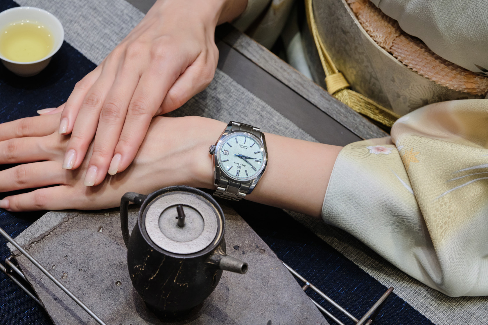 品牌從2021年開始推出一系列以日本獨特的美學觀點演繹24節氣景致,這只錶就是以24節氣中春夏交接的「榖雨」作為發想。